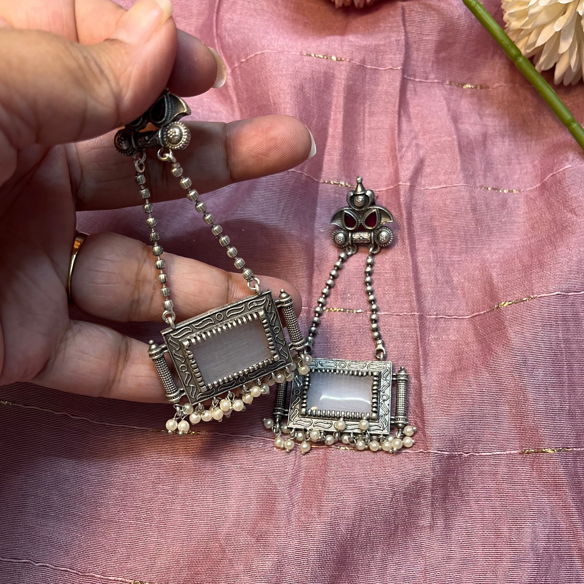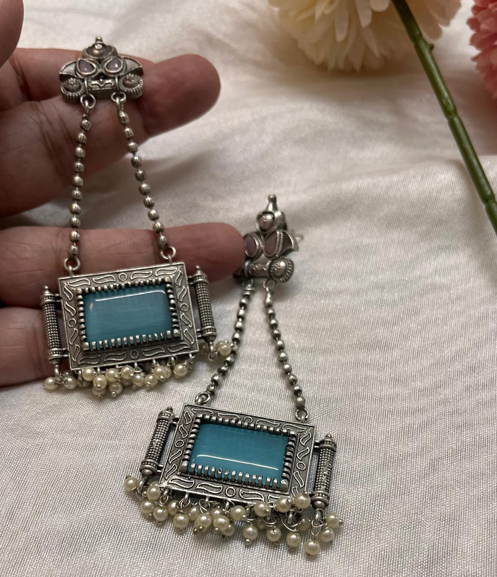 The Hanging Stones Earrings are a graceful and eye-catching accessory, designed to add a touch of sparkle and movement to any look. These earrings feature delicately suspended stones and beads, creating a mesmerizing cascading effect.