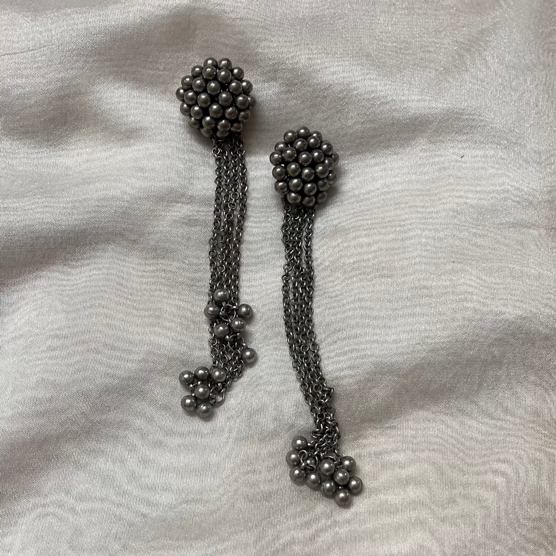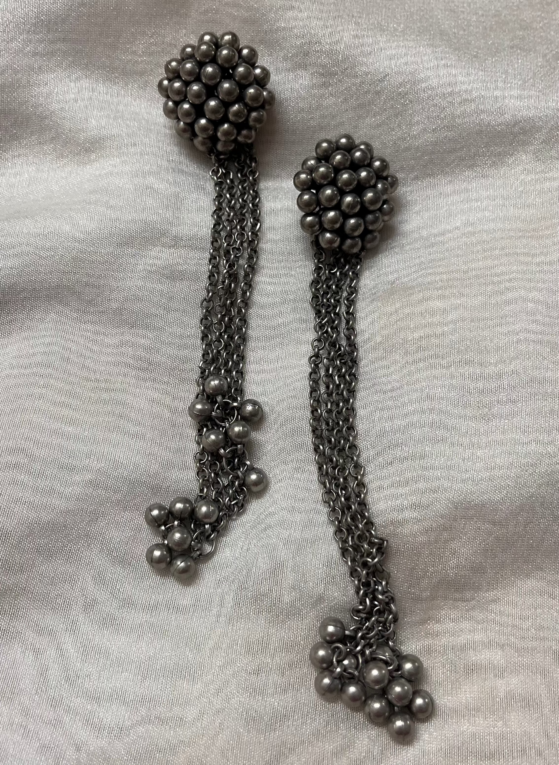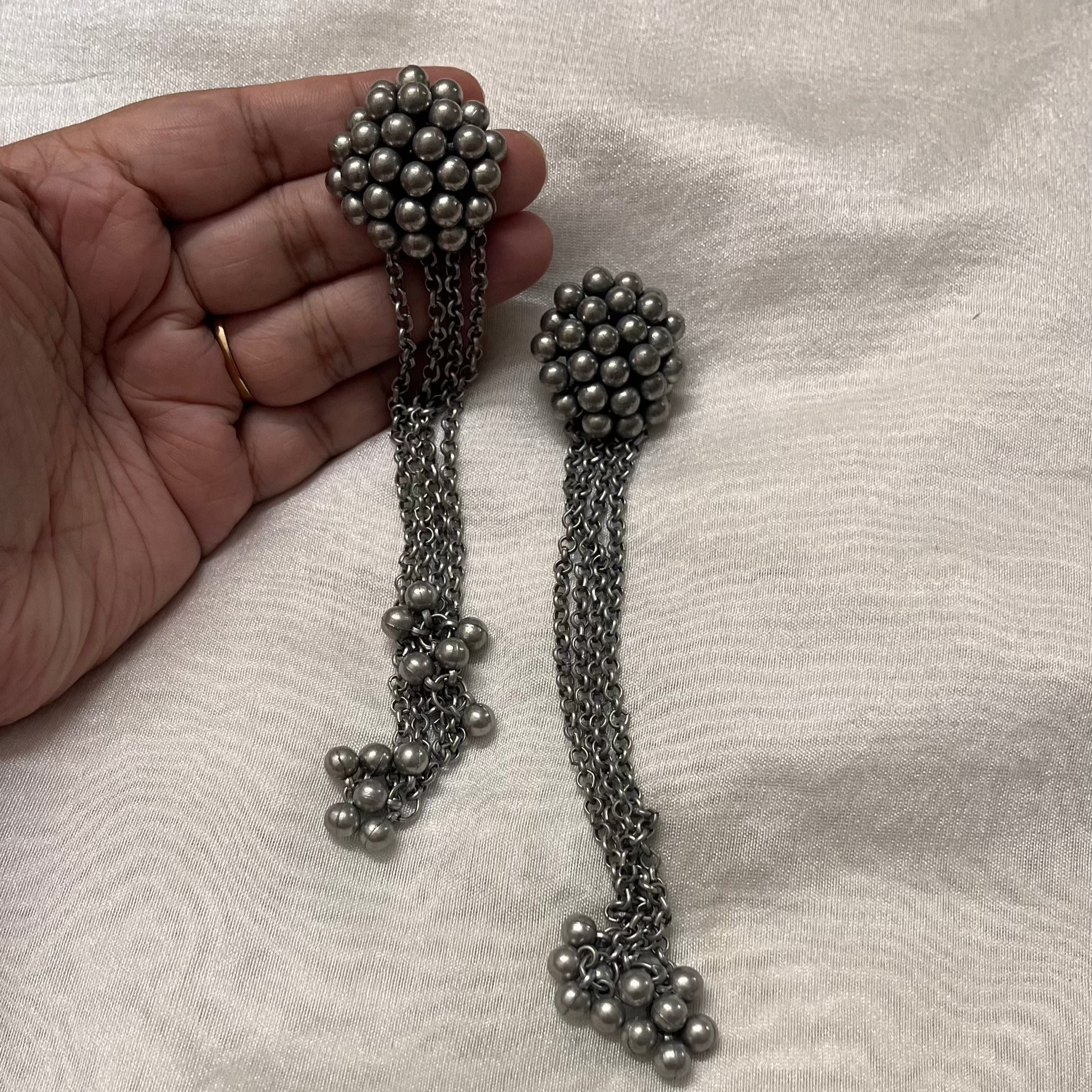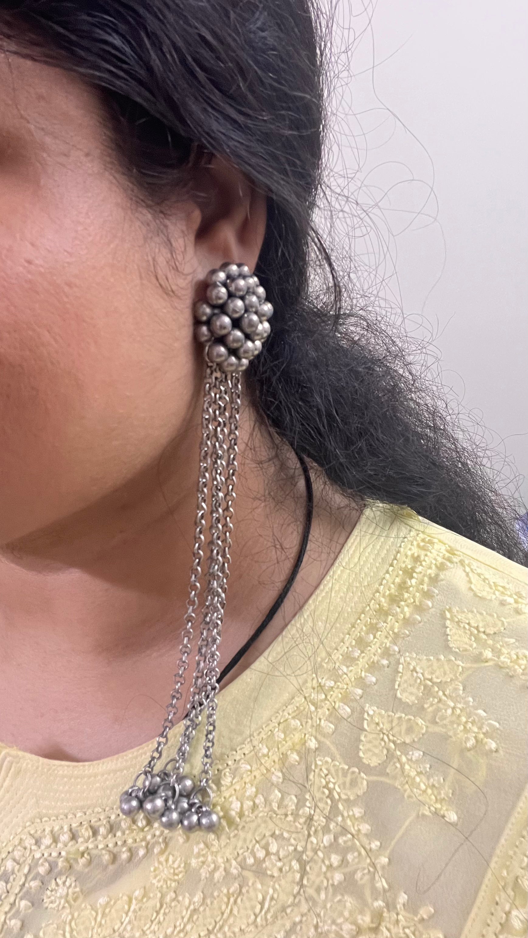 Expertly crafted, Anaya metal ball earrings with chains add a stylish touch to any outfit. With their intricate design and high-quality materials, these earrings are both elegant and durable. Elevate your look with these unique earrings that are sure to make a statement.