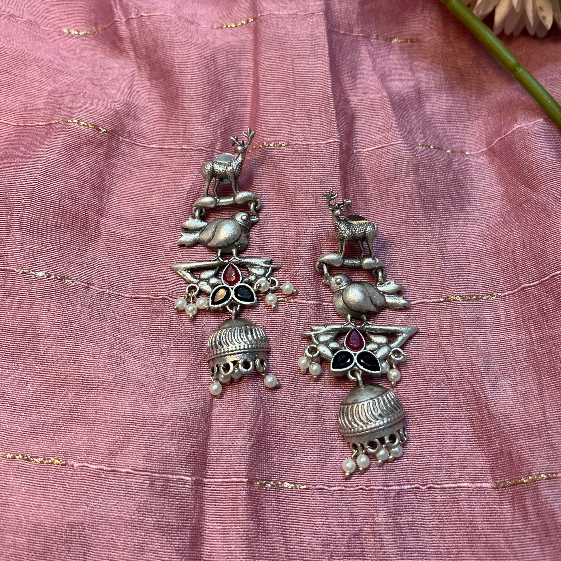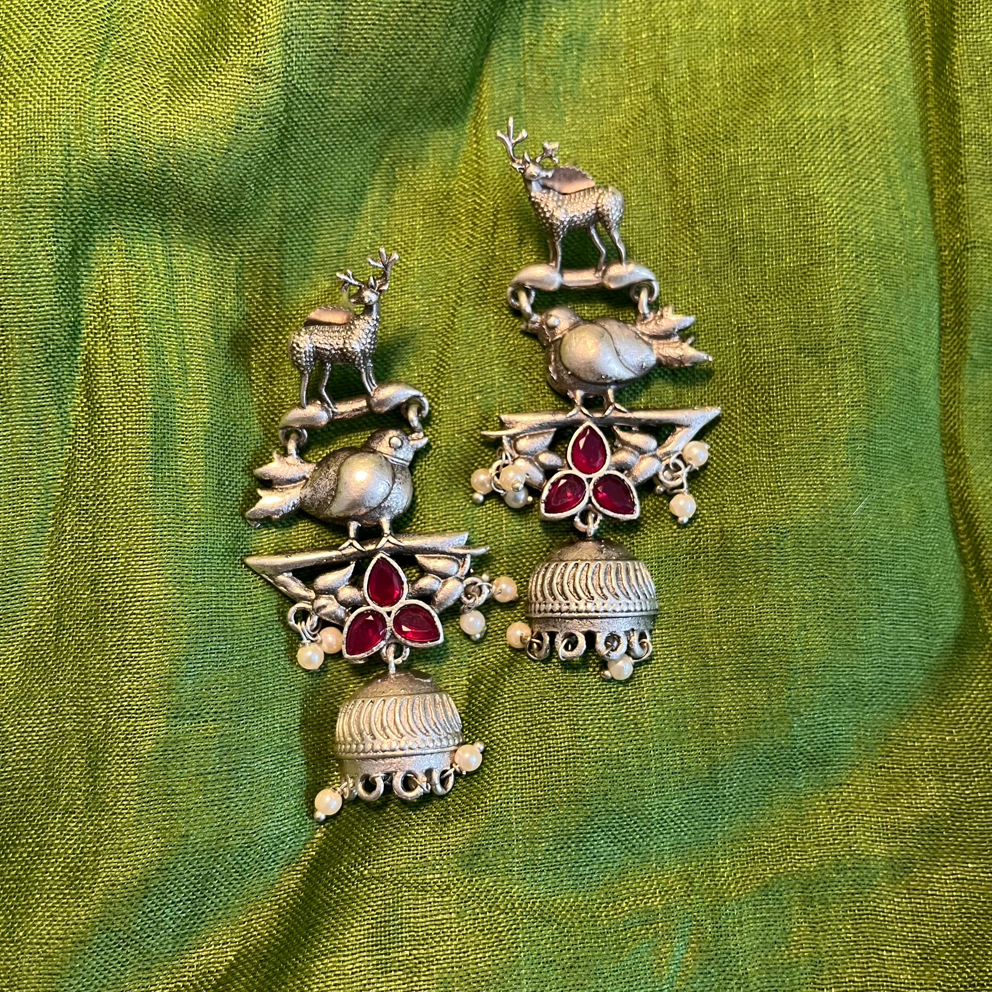 The Deer and Bird Earrings are a unique and artistic blend of nature-inspired beauty and elegance. Featuring delicate motifs of graceful deer and free-spirited birds, these earrings symbolize harmony, freedom, and serenity. Crafted in brass finishes, they are perfect for those who love wildlife and nature-themed jewelry.