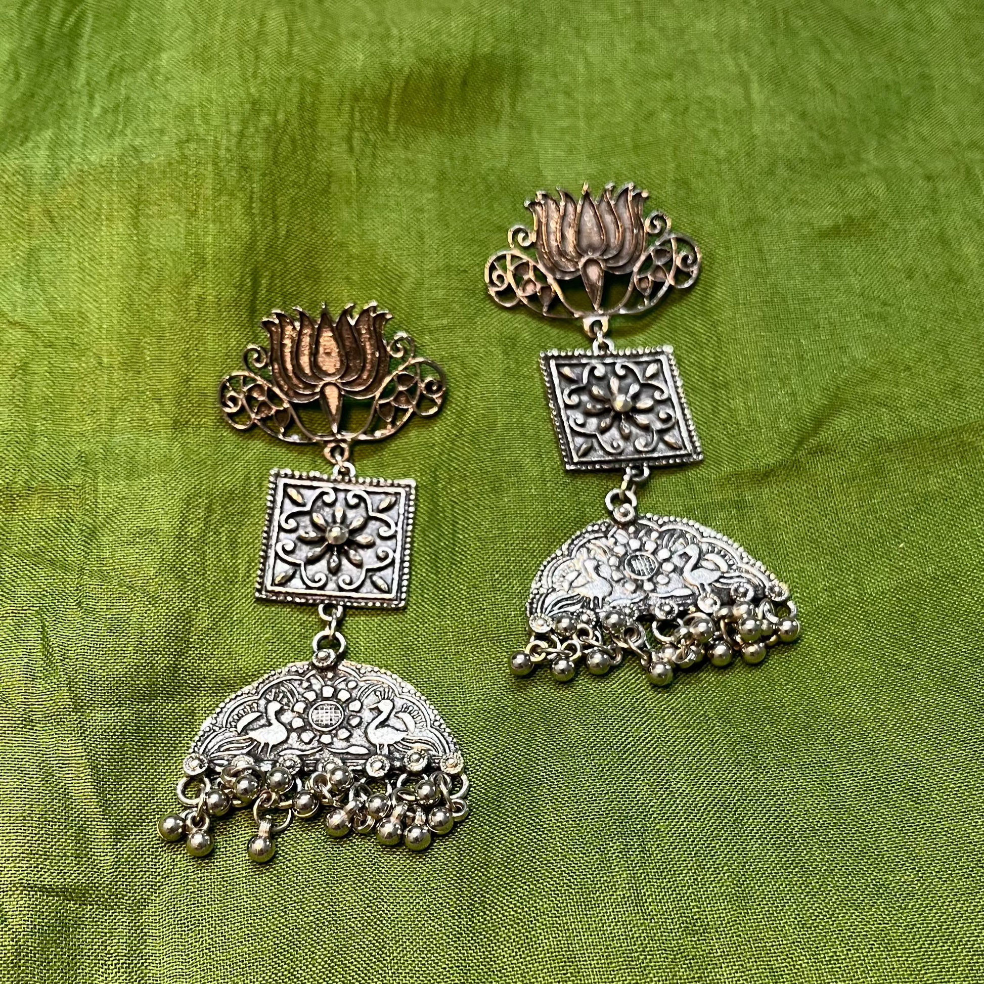 The Lotus Danglers are a graceful and symbolic pair of earrings inspired by the serene beauty of the lotus flower, representing purity, strength, and enlightenment. With their elegant dangling design, these earrings add a touch of sophistication and charm to any look.