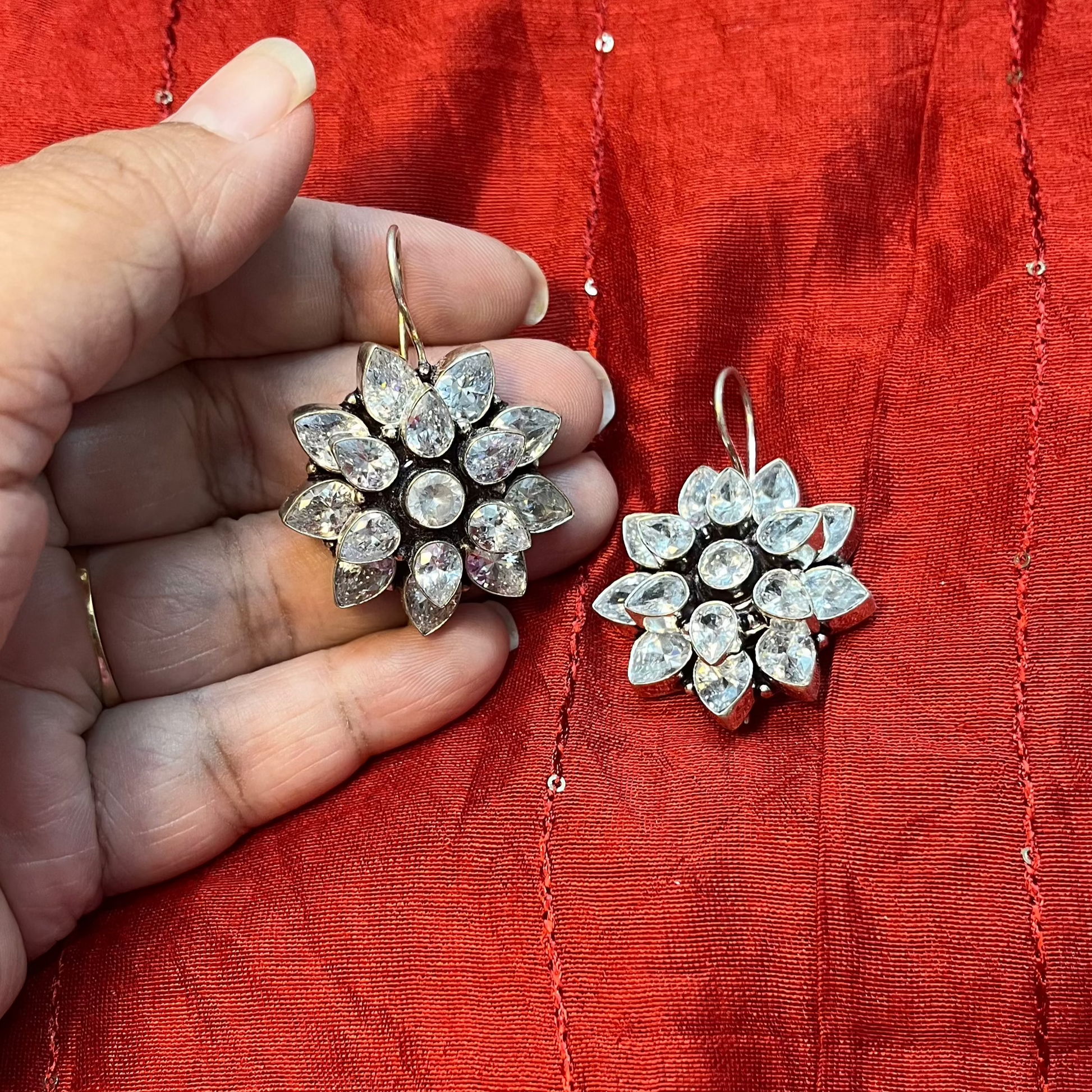 The Daisy Transparent Stone Studs are a delicate and charming pair of earrings inspired by the graceful beauty of daisy flowers. Featuring clear, transparent stones arranged in a floral pattern, these studs exude elegance, simplicity, and timeless charm, making them perfect for everyday wear or special occasions.
