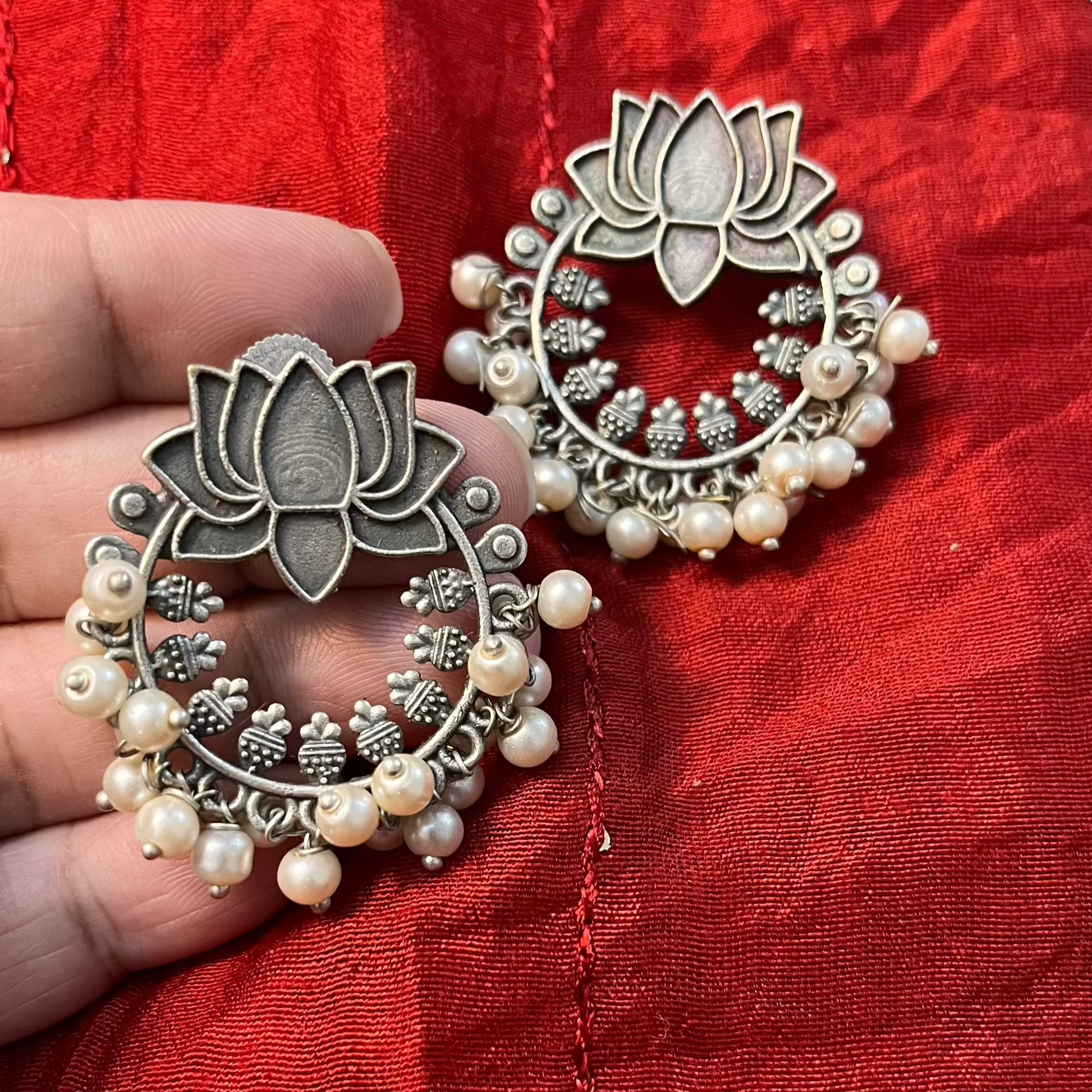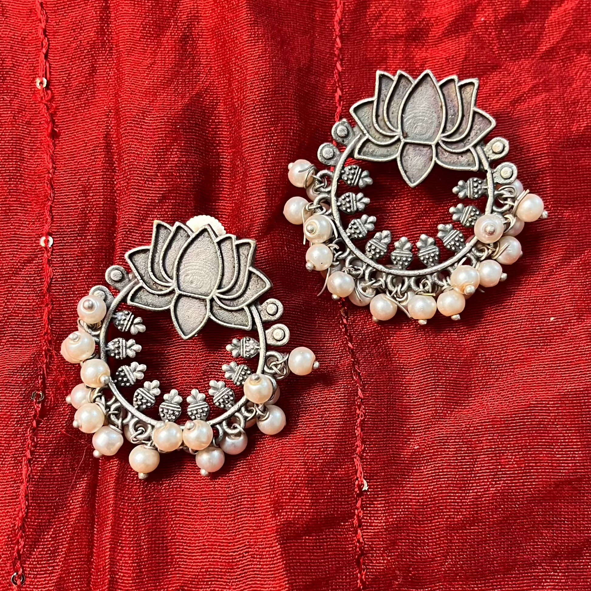 Inspired by purity and grace, our Lotus Pearl Drop Earrings beautifully capture the essence of elegance. The intricately designed lotus motif symbolizes beauty and spiritual awakening, while the delicate pearl drop adds a touch of timeless sophistication. This exquisite blend of nature and luxury makes these earrings a perfect statement piece for festive occasions, weddings, and cultural celebrations.