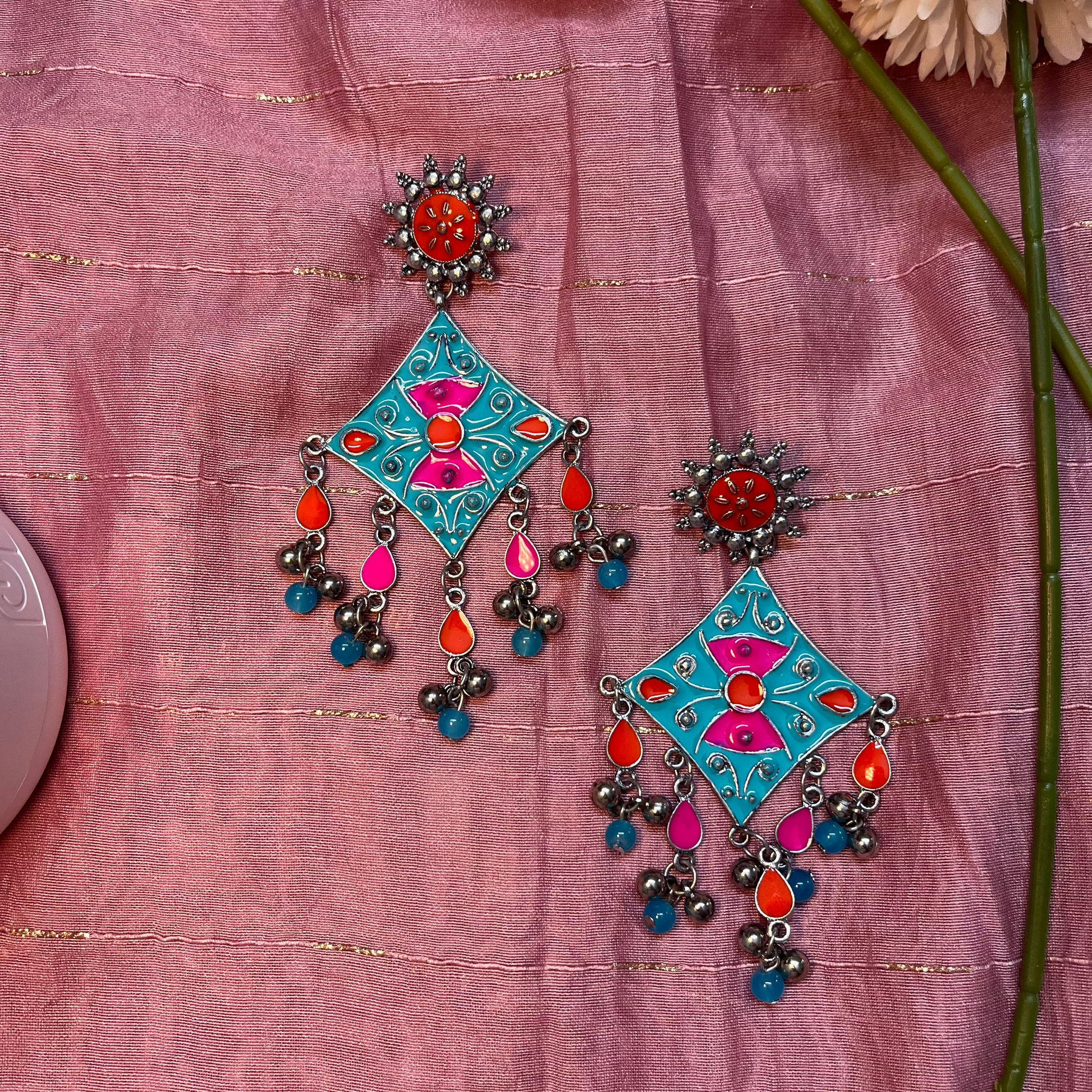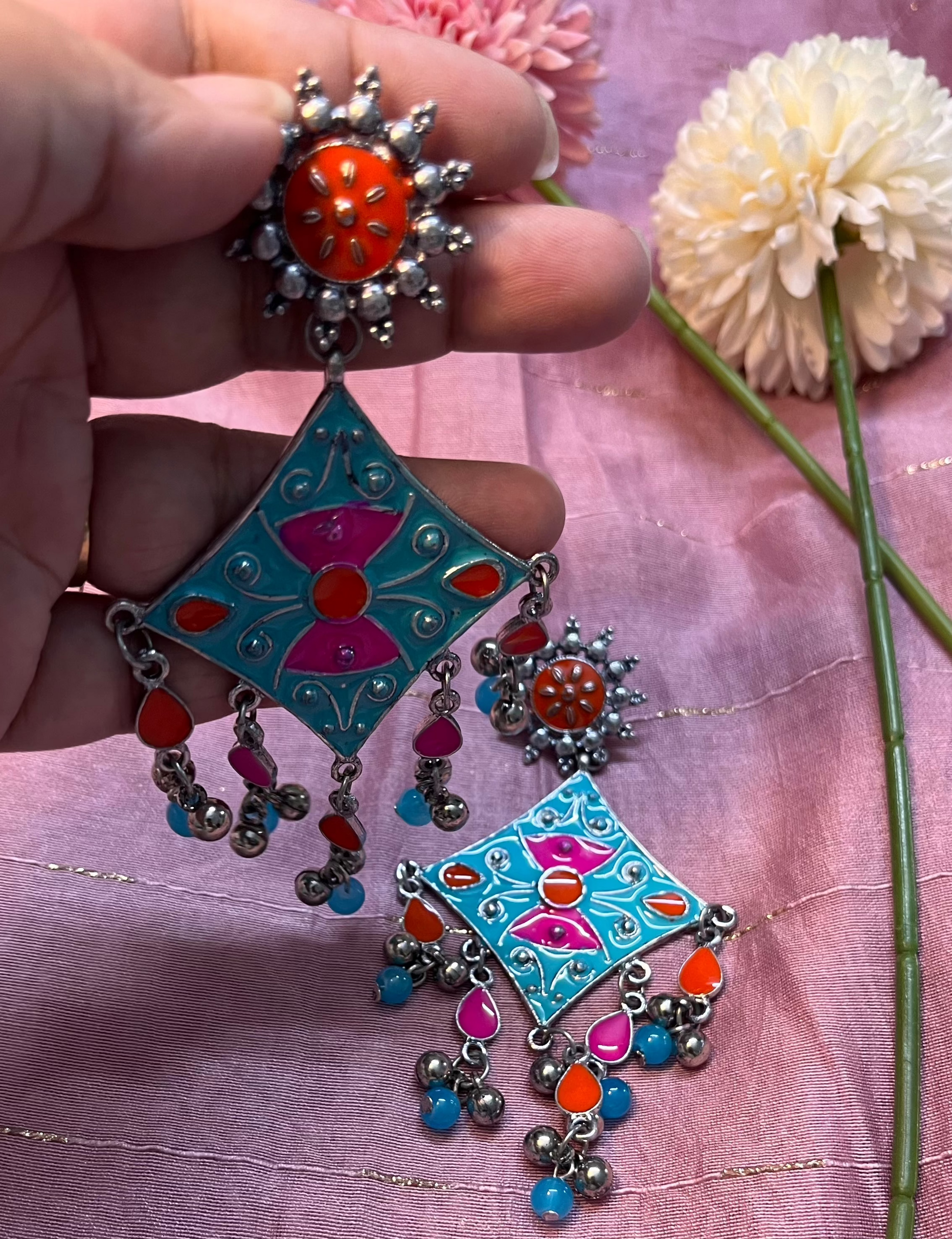 The Colorful Dangler Earrings are a vibrant and eye-catching accessory that adds a playful yet elegant touch to any outfit.