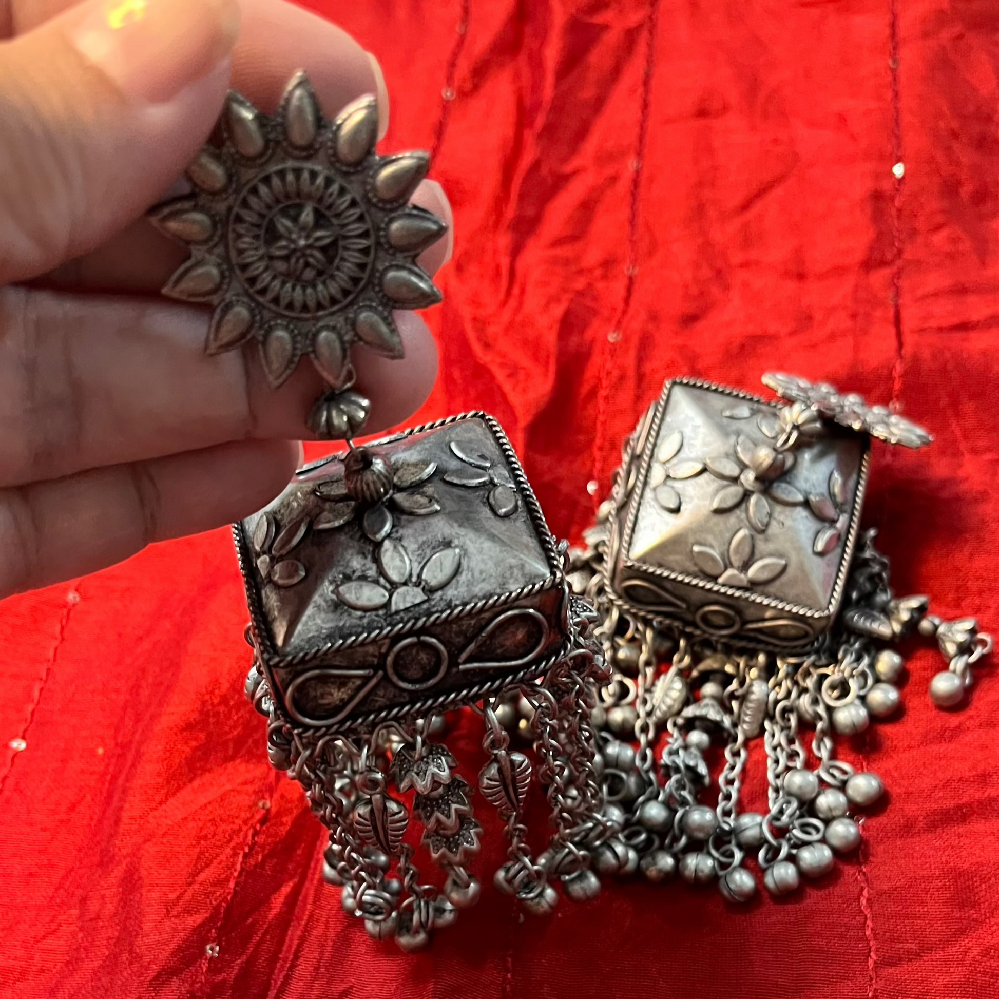 A perfect blend of nature’s beauty and regal elegance, our Chandelier Jhumka with Flower on Top is designed to make a statement. The delicate floral motif crowns the classic jhumka, symbolizing grace and femininity, while the cascading chandelier design adds movement and grandeur. The intricate detailing and elegant silhouette make these earrings perfect for weddings, festive occasions, and special celebrations.