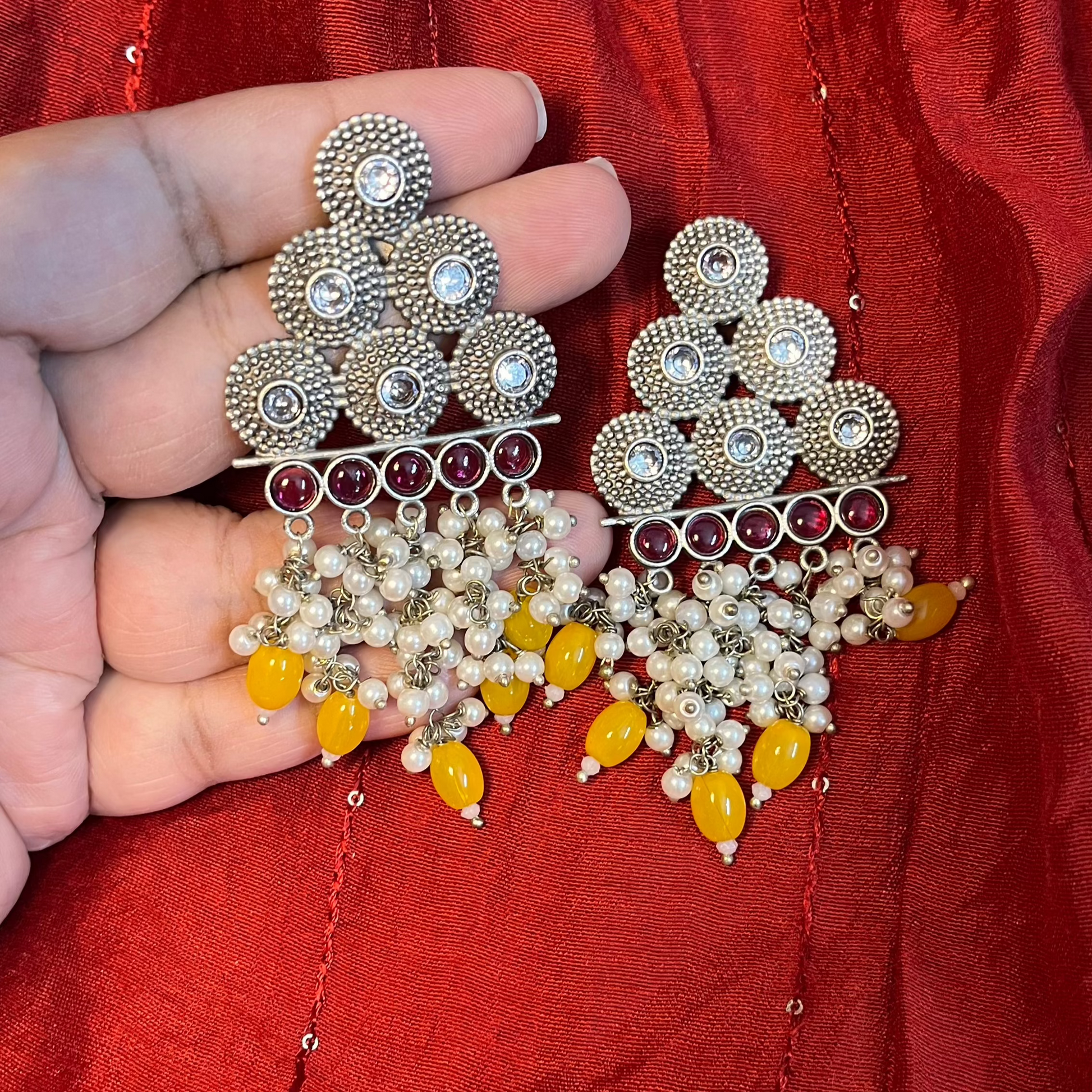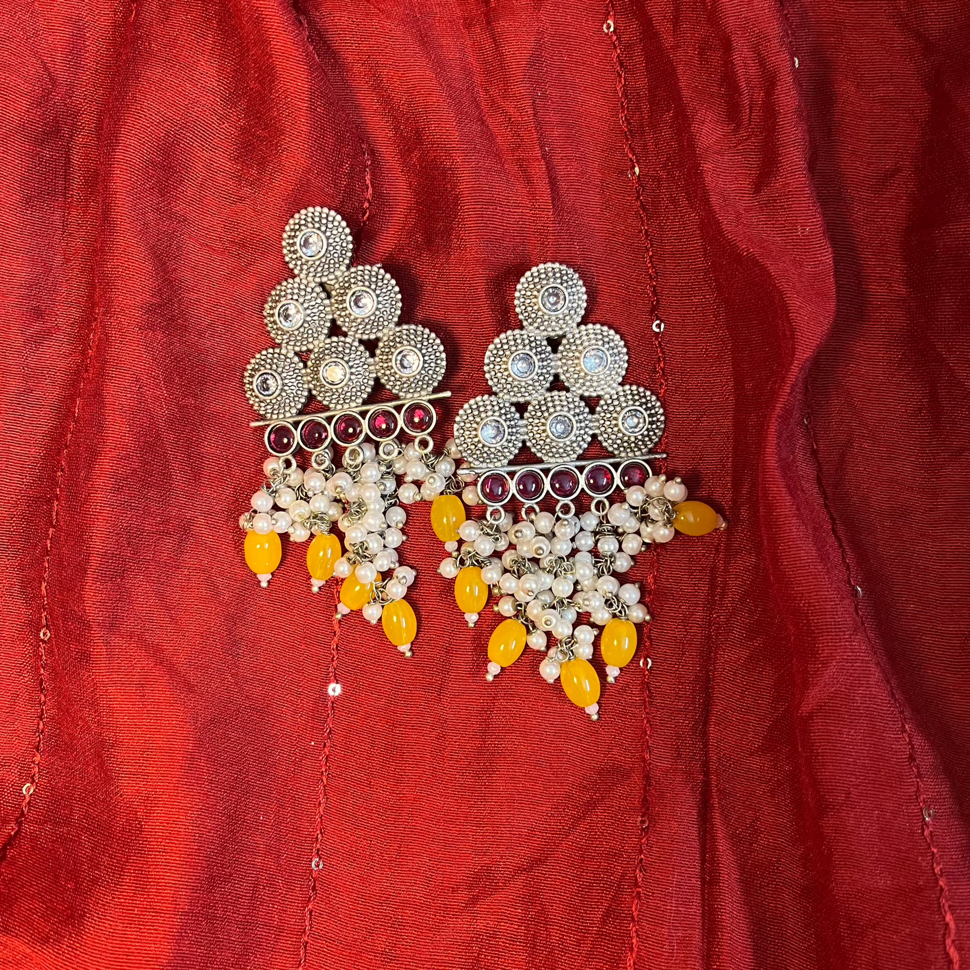 Experience the fusion of art and fashion with these Red, White, and Yellow Dangler Earrings.