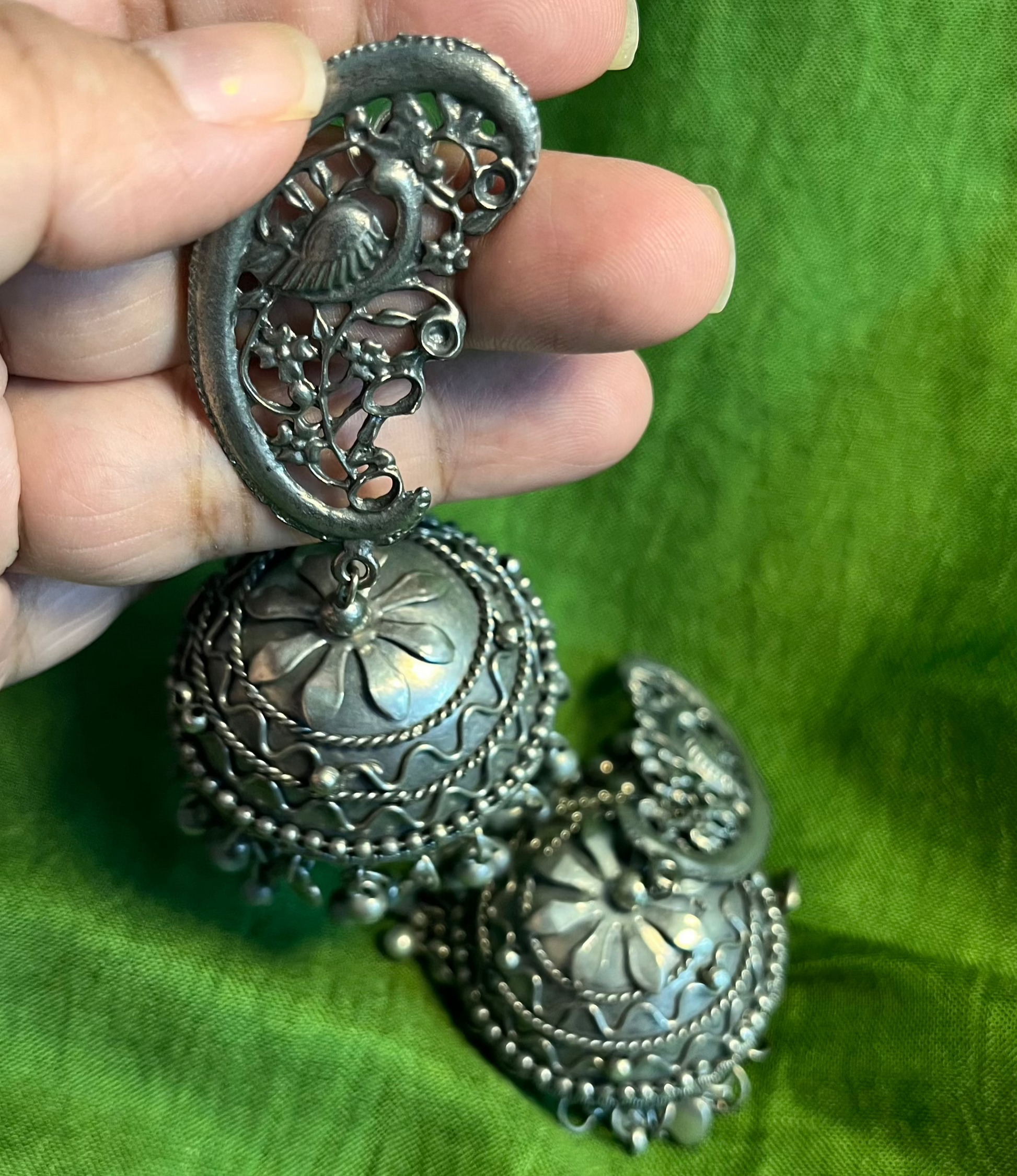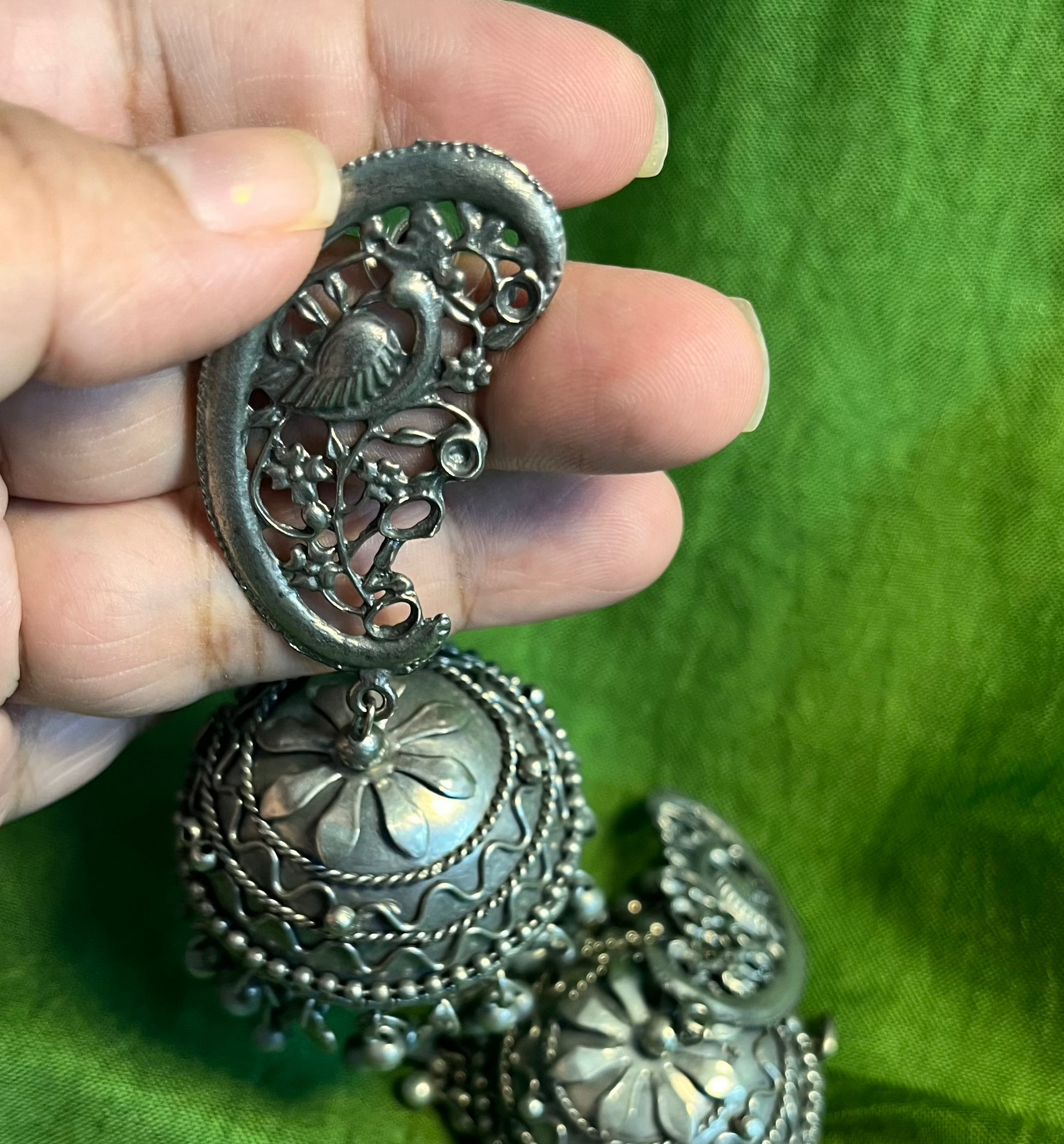 Embrace the majestic beauty of tradition with our Peacock Design Jhumka, a symbol of elegance and grace. Featuring intricately carved peacock motifs, these earrings capture the essence of regal charm and artistic craftsmanship. The detailed peacock design gracefully merges with the timeless jhumka silhouette, making it a stunning statement piece for festive occasions, weddings, and celebrations.