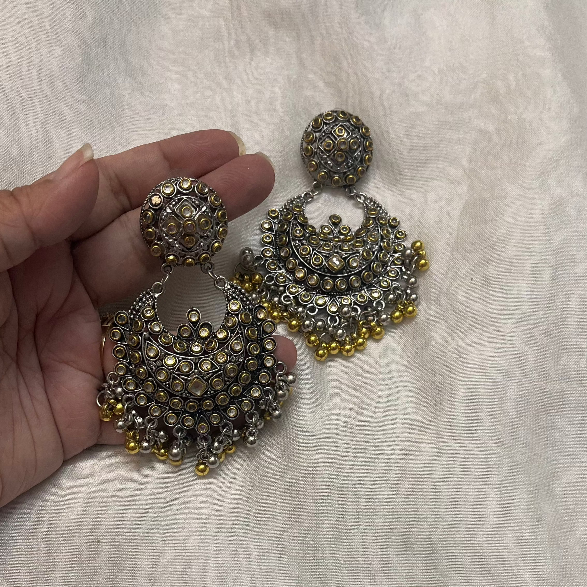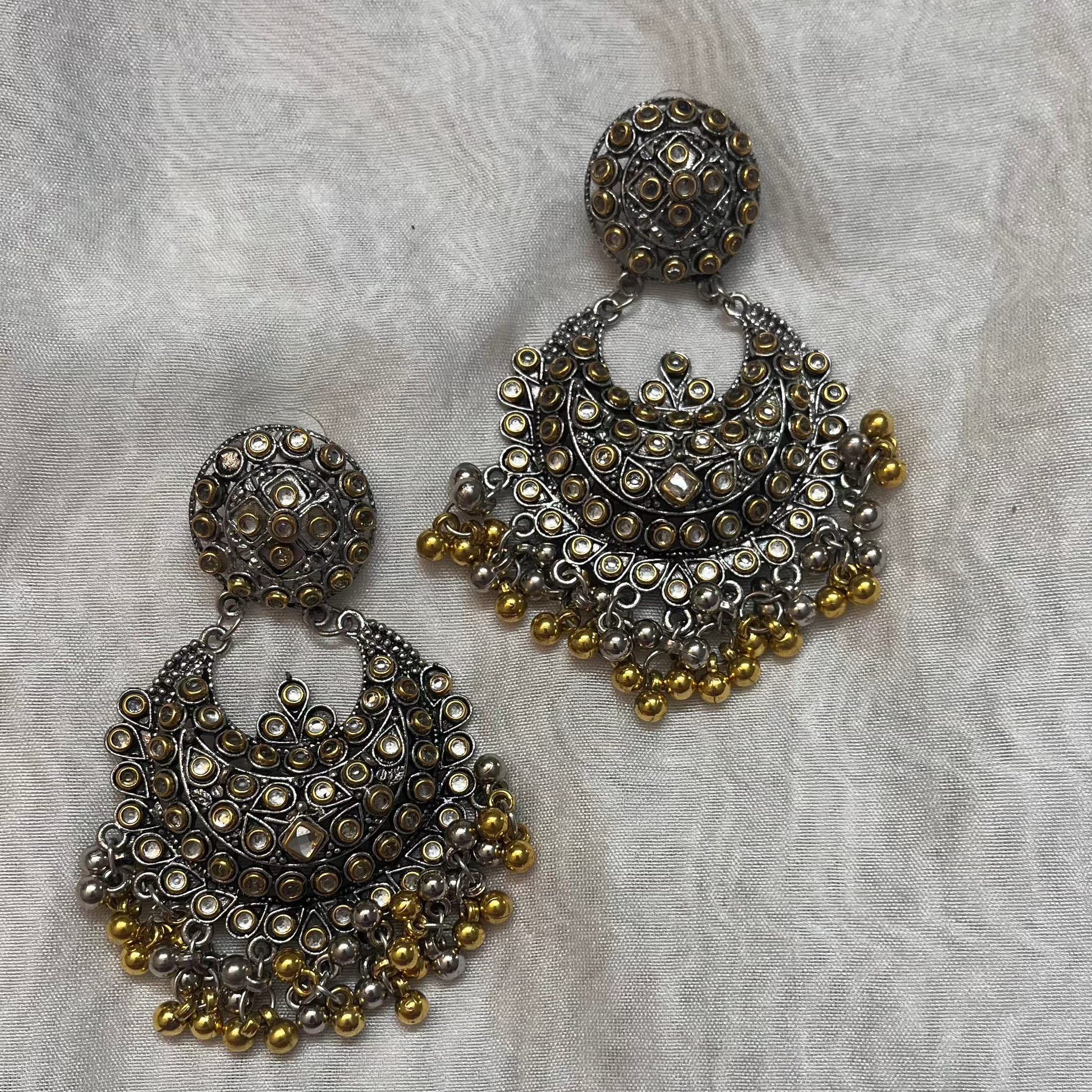The Gold Drops Chandbaliyan are a breathtaking fusion of royal heritage and modern elegance, featuring the iconic crescent-shaped Chandbali design adorned with graceful gold drop embellishments. These earrings exude grandeur, femininity, and cultural richness, making them an essential piece for festive and bridal wear.