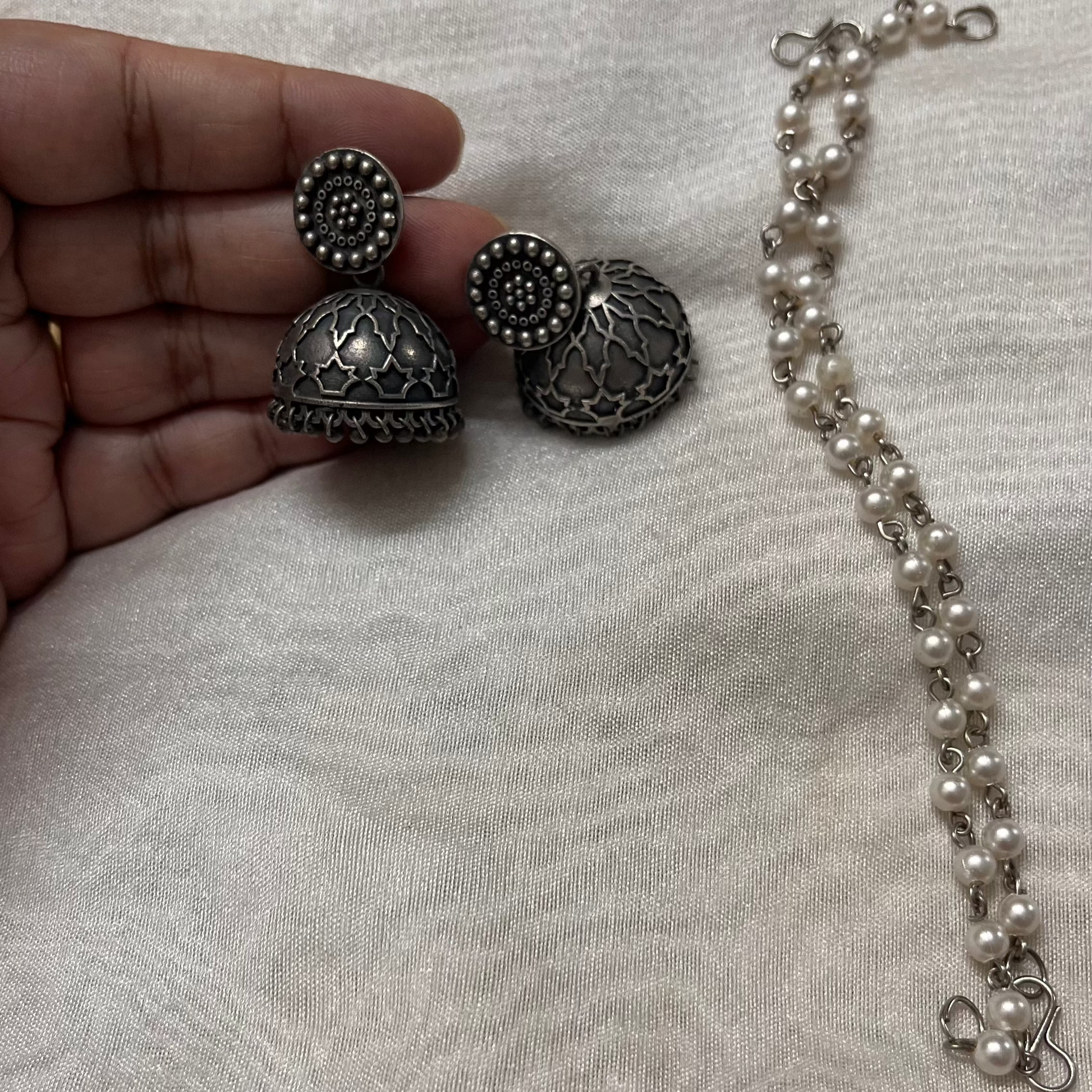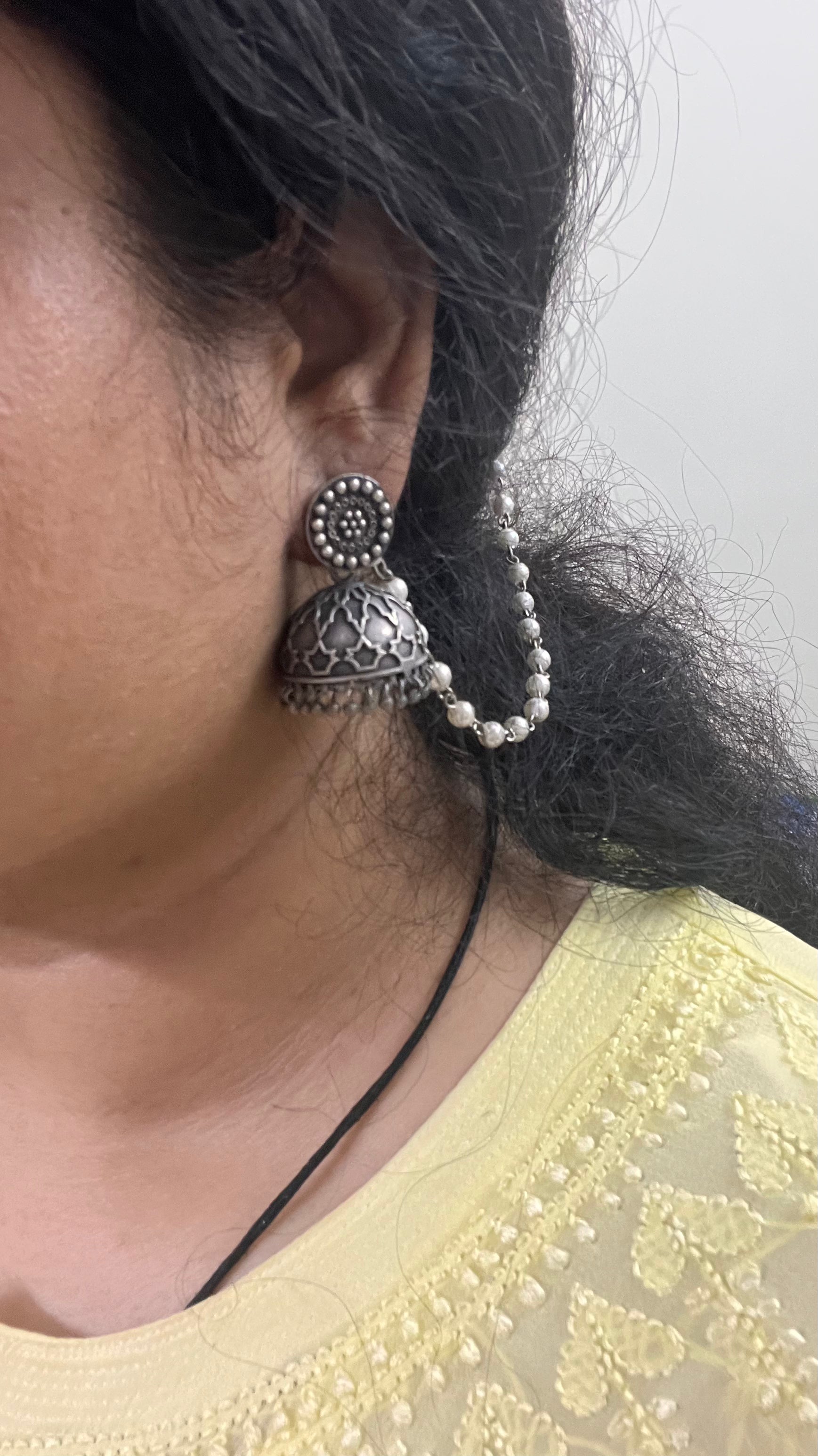 The Kiara jhumka with ear chain is perfect for daily wear. Its small size makes it versatile and easy to wear with any outfit. With its delicate design and traditional style, this earring is a must-have for any jewelry collection. Enhance your everyday look with the elegant Kiara jhumka.