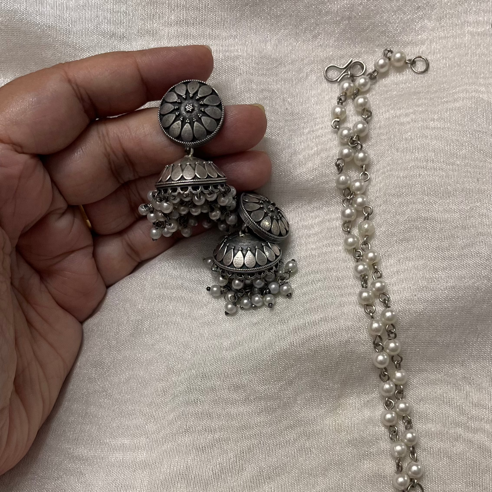 The Vedika double layer pearl jhumka is the perfect accessory for everyday wear. With its elegant design and high-quality materials, it adds a touch of sophistication to any outfit. The double layer feature provides a unique and eye-catching look, while the pearls add a classic touch of femininity. Stay stylish and on-trend with this versatile piece.